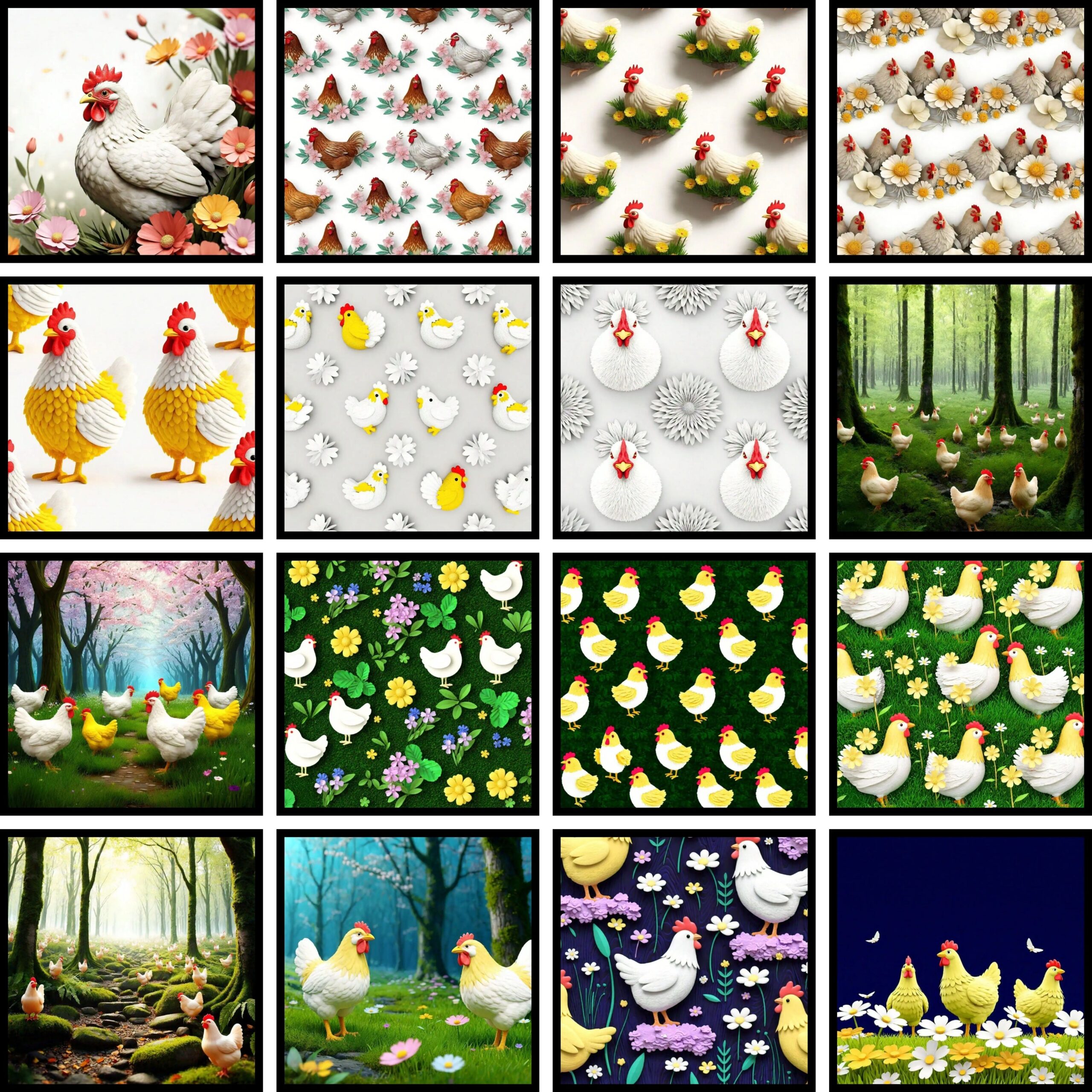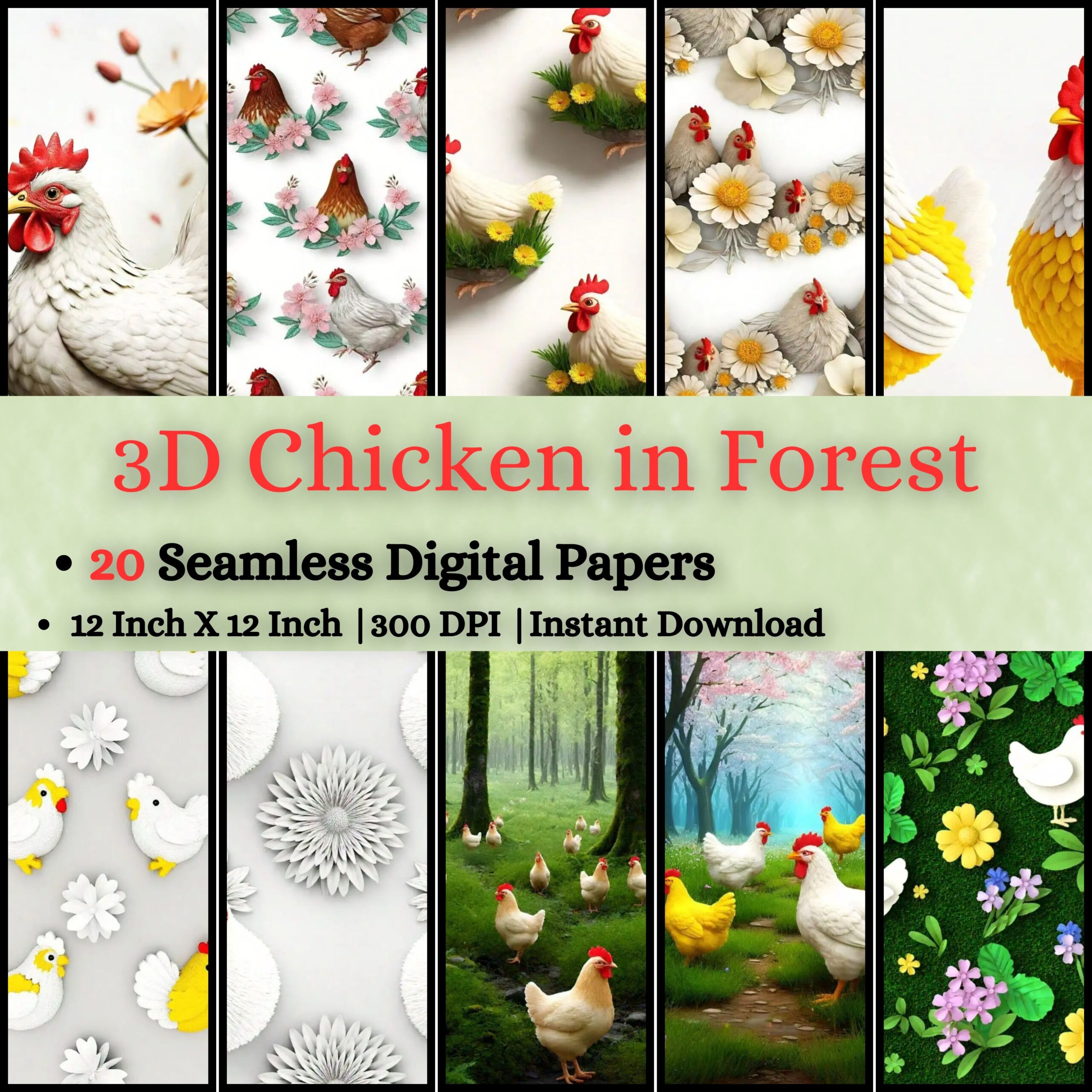 3D Chicken in Forest Digital Pattern Texture,Instant Digital Download,Digital Fabrics Pattern,Digital Pattern Texture,Printable Pattern Texture.