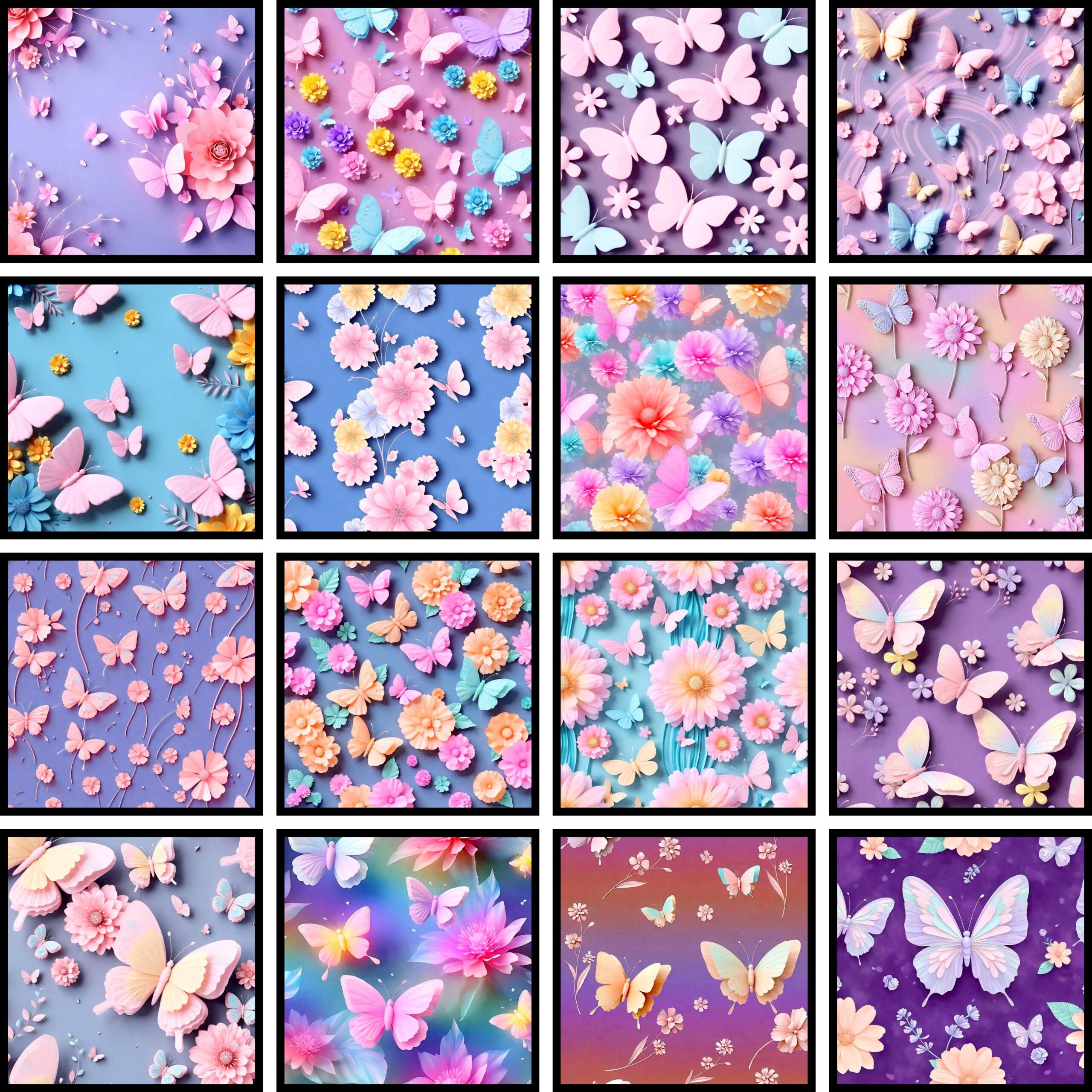 3d Pastel Butterflies and Flowers Digital Pattern Texture,Instant Digital Download,Digital Fabrics Pattern,Digital Pattern Texture,Printable Pattern Texture|#135_PT