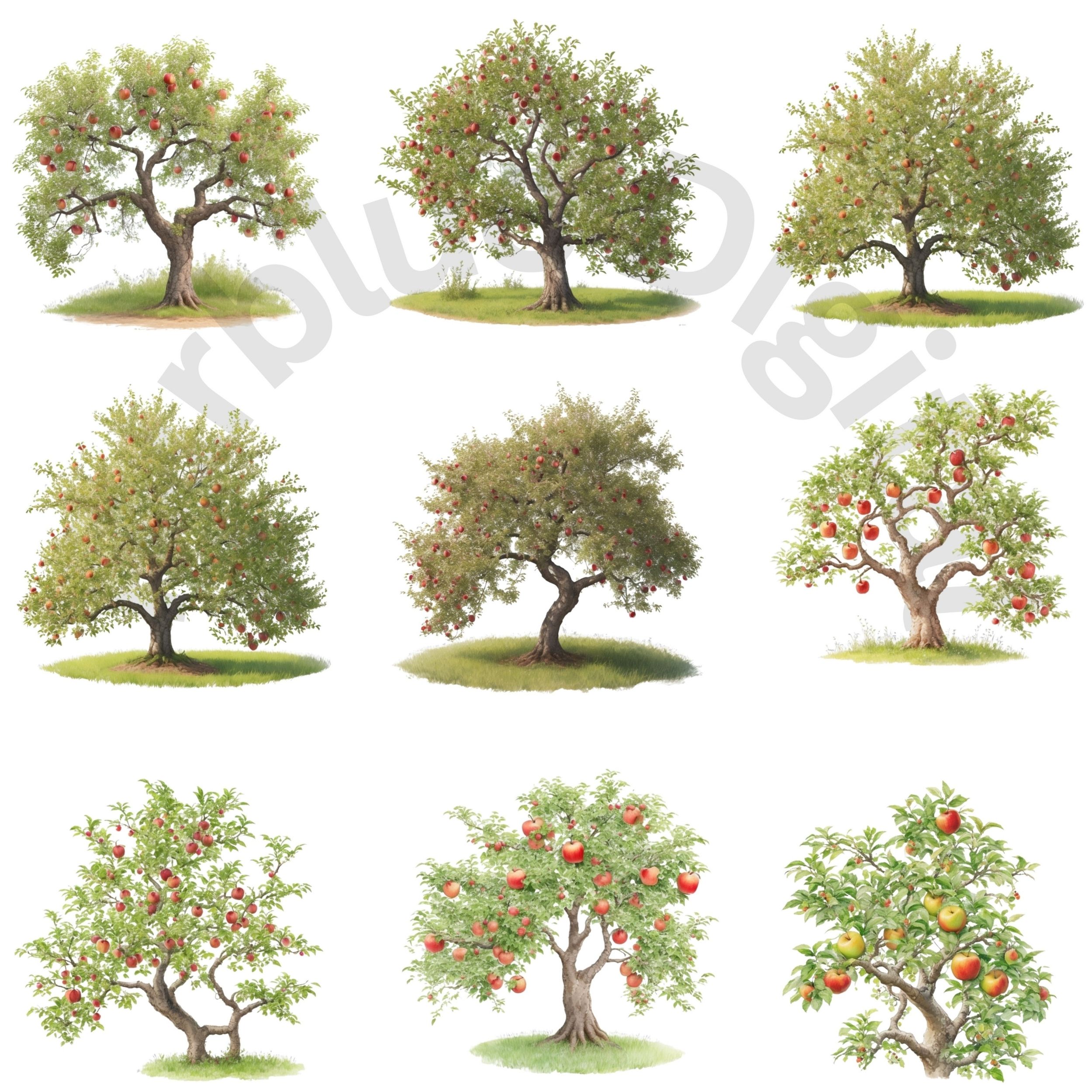 Digital Apple Tree Clip Art,Instant Digital Download, Printable Watercolor Clip Art, High Quality PNG, Digital download, Paper Craft, Junk journals
