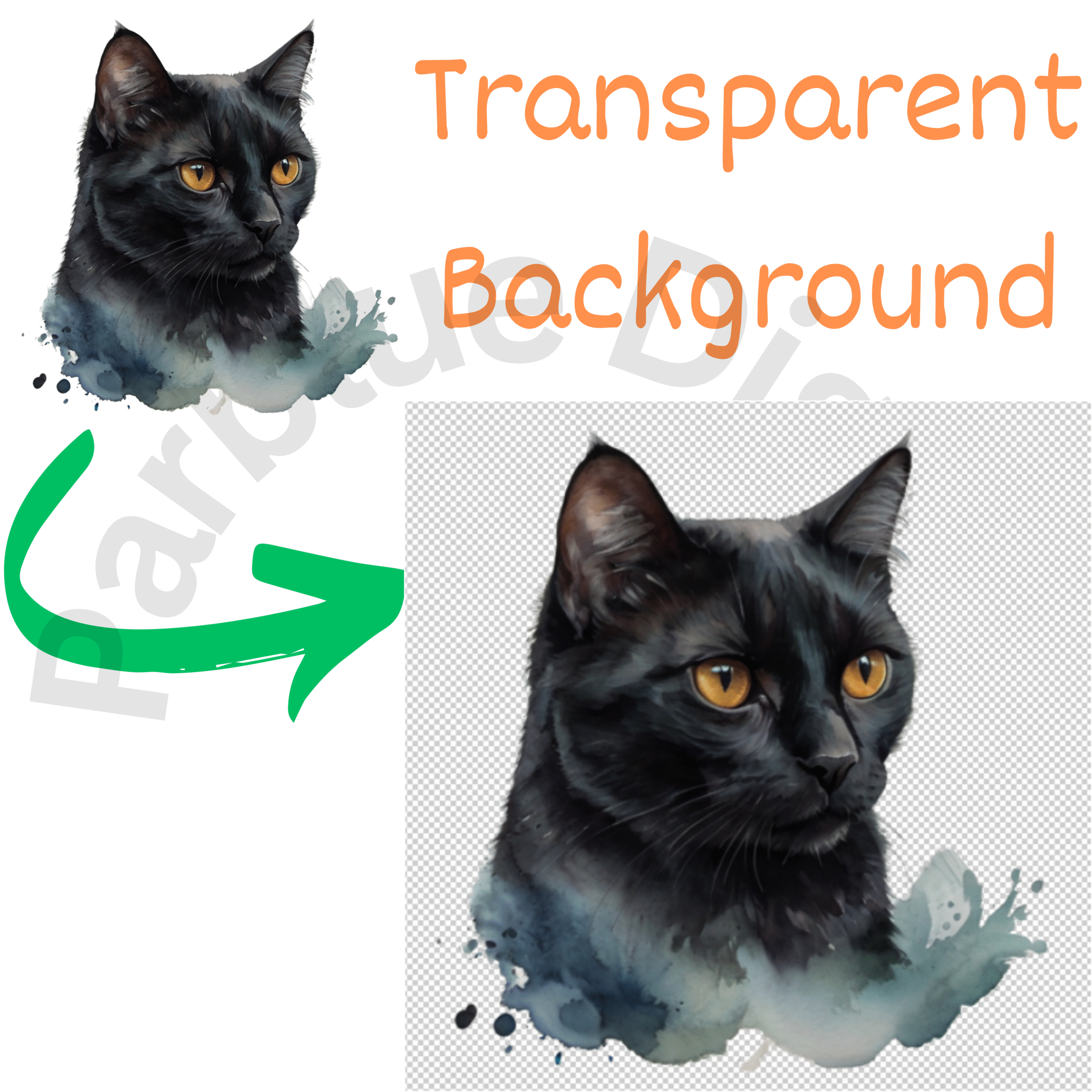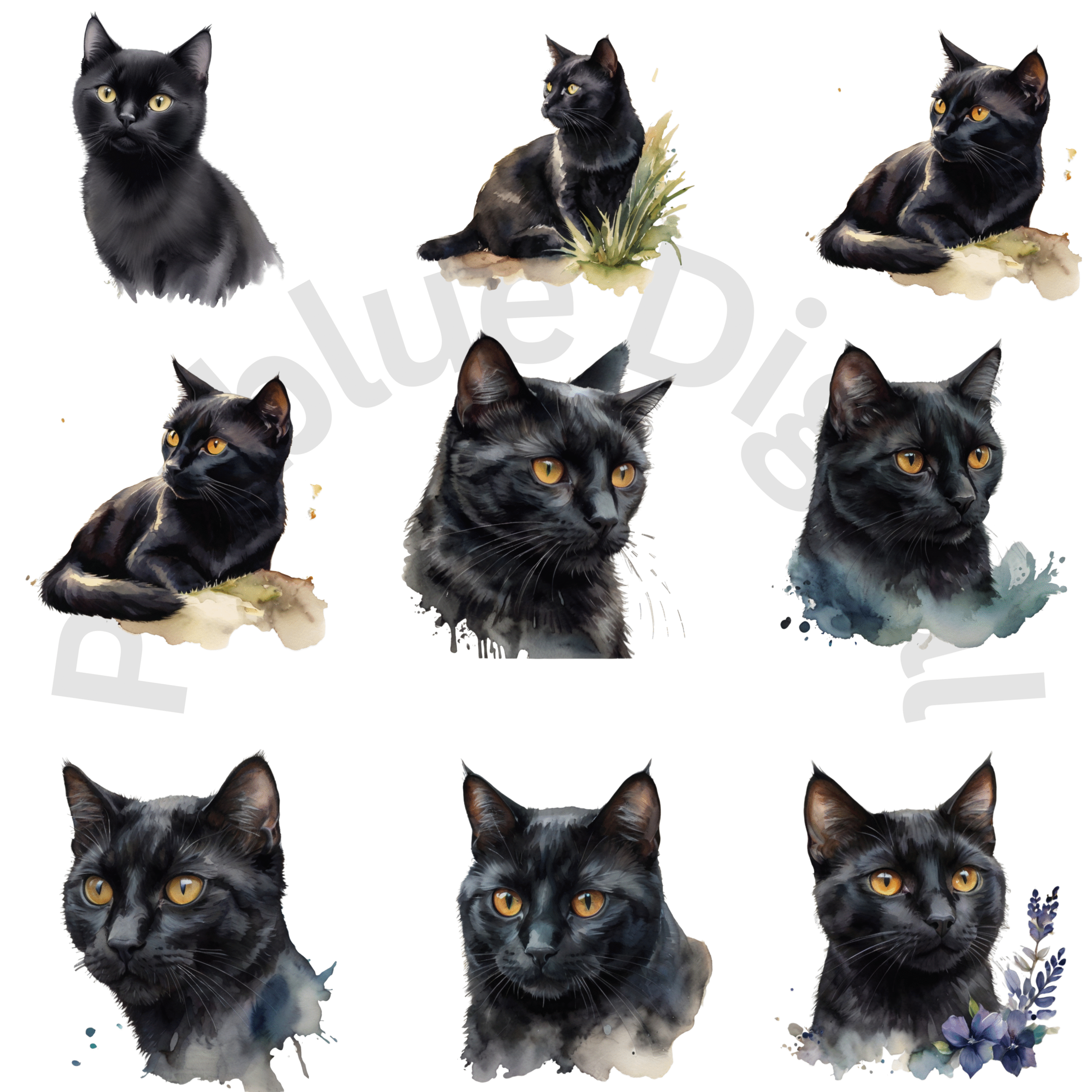 Digital Black Cat Clipart, Instant Digital Download, Printable Watercolor Clipart, High Quality PNG, Digital download, Paper Craft, Junk journals | # 245 CA
