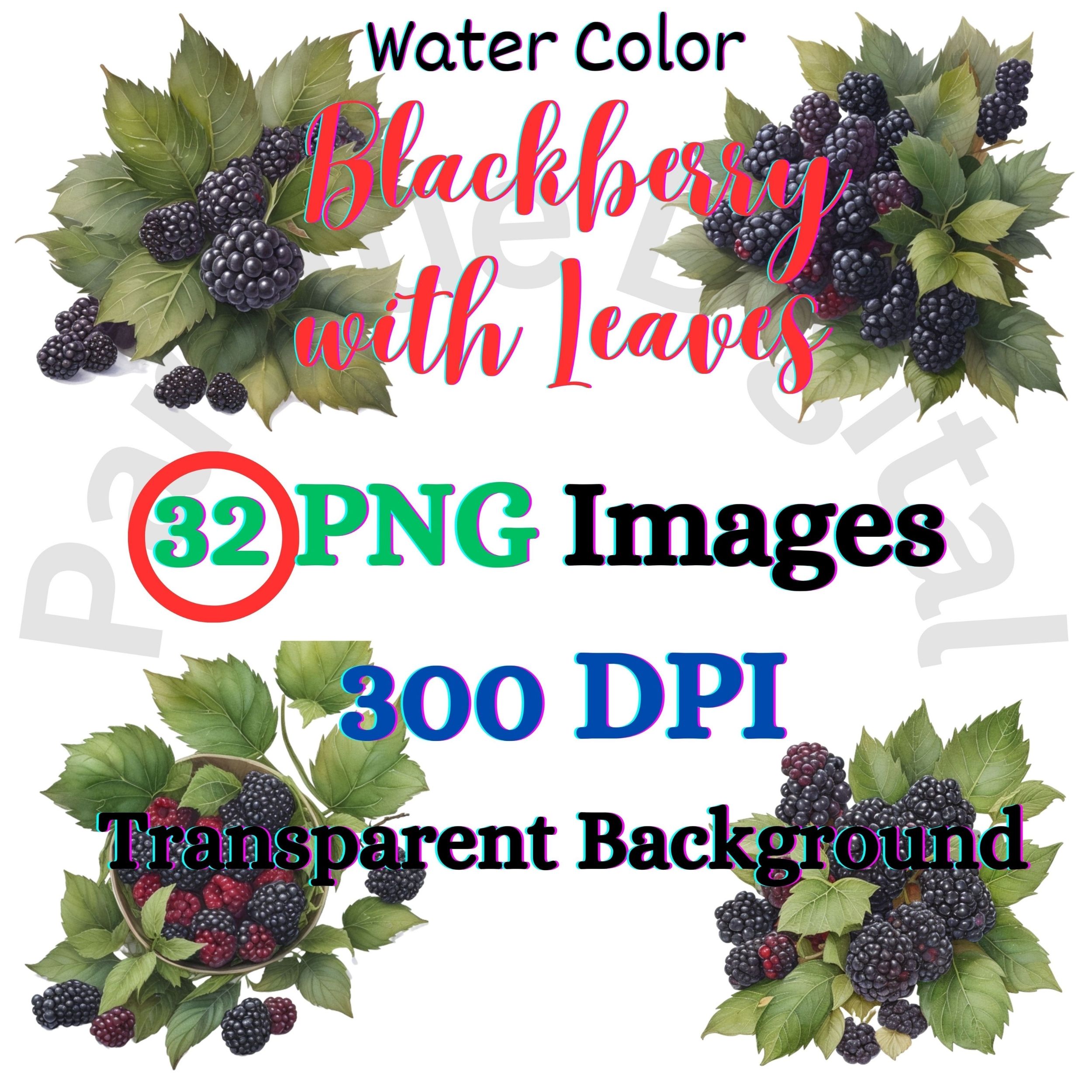 Digital Blackberry With Leaf Clip Art,Instant Digital Download, Printable Watercolor Clip Art, High Quality PNG, Digital download, Paper Craft, Junk journals | # 209 CA