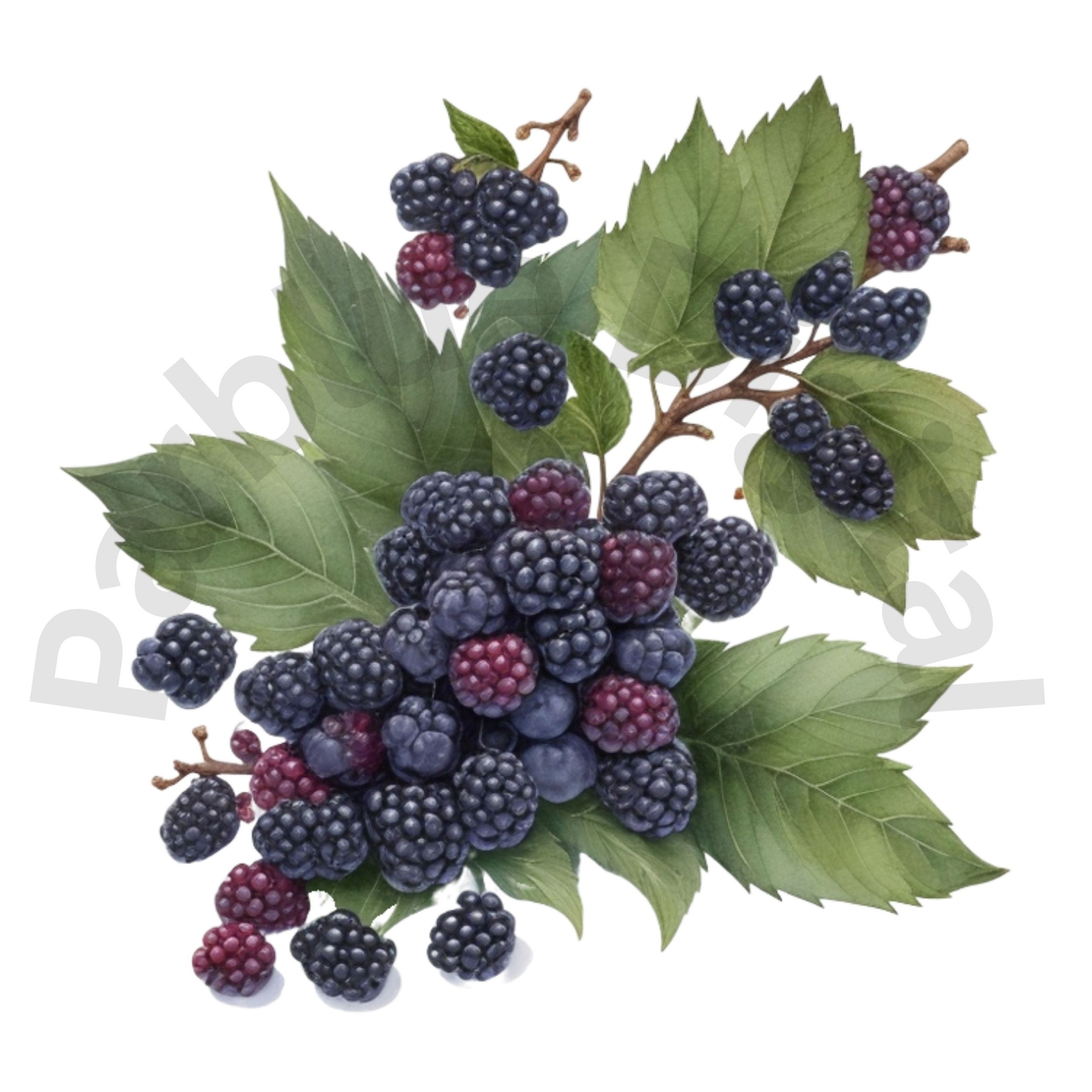 Digital Blackberry With Leaf Clip Art,Instant Digital Download, Printable Watercolor Clip Art, High Quality PNG, Digital download, Paper Craft, Junk journals.
