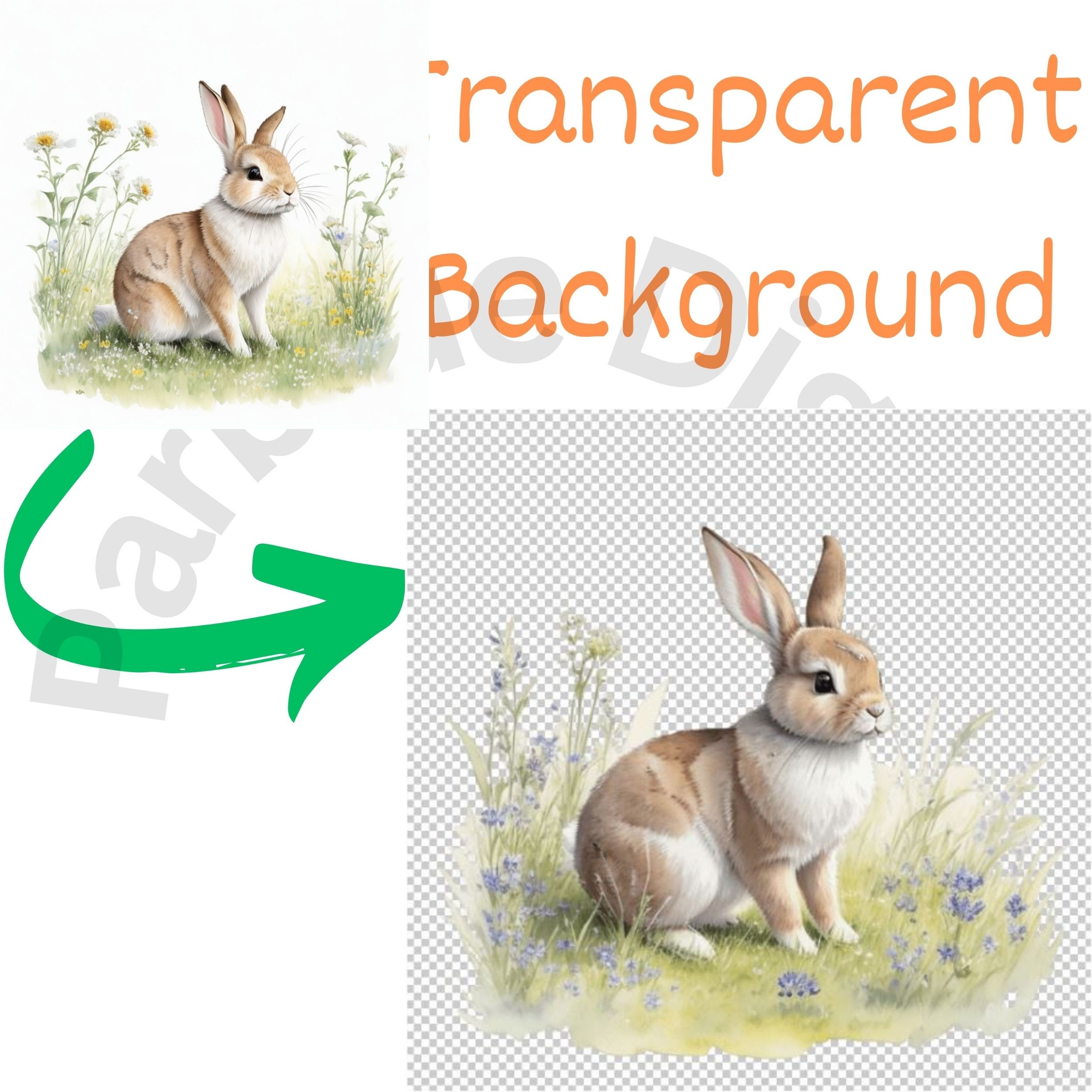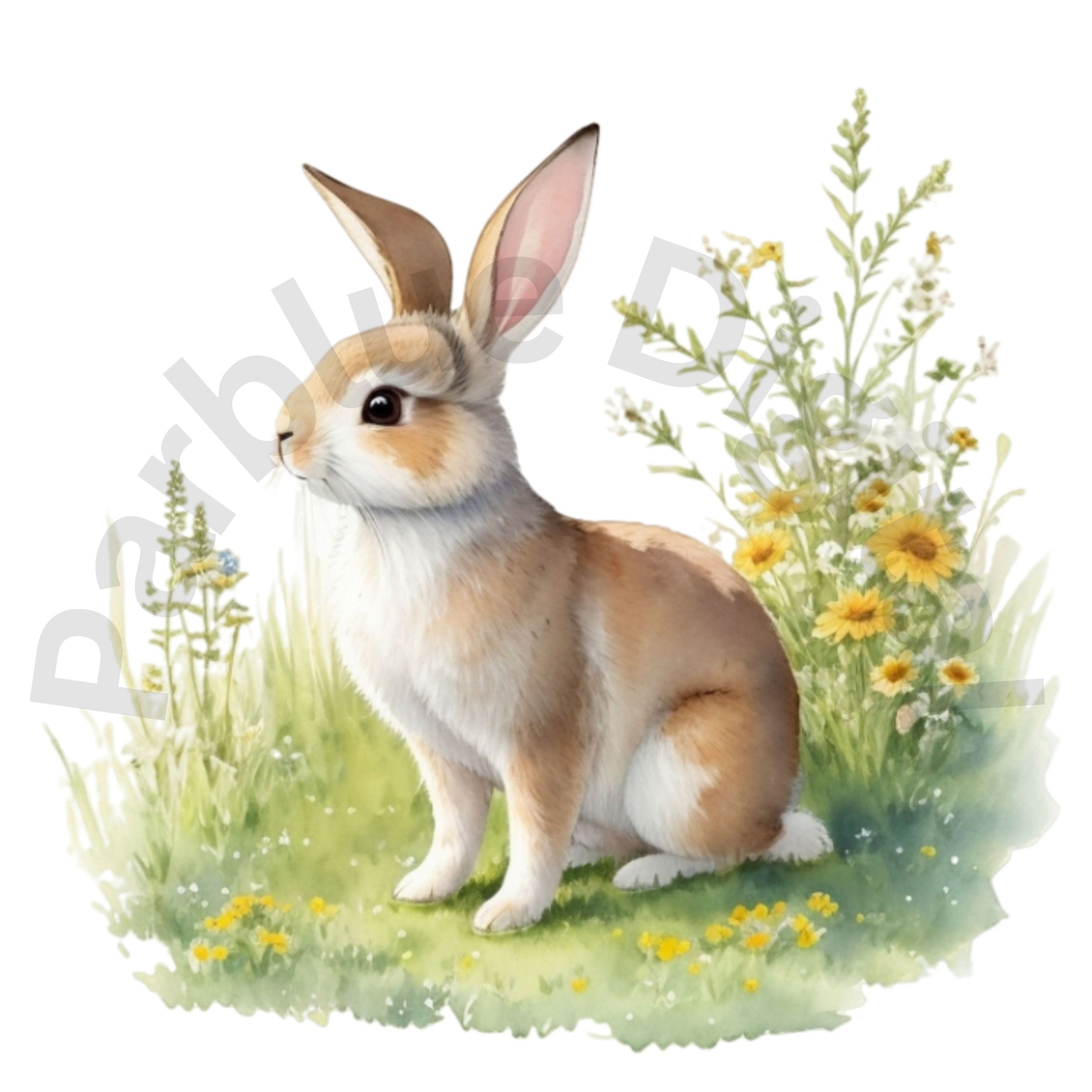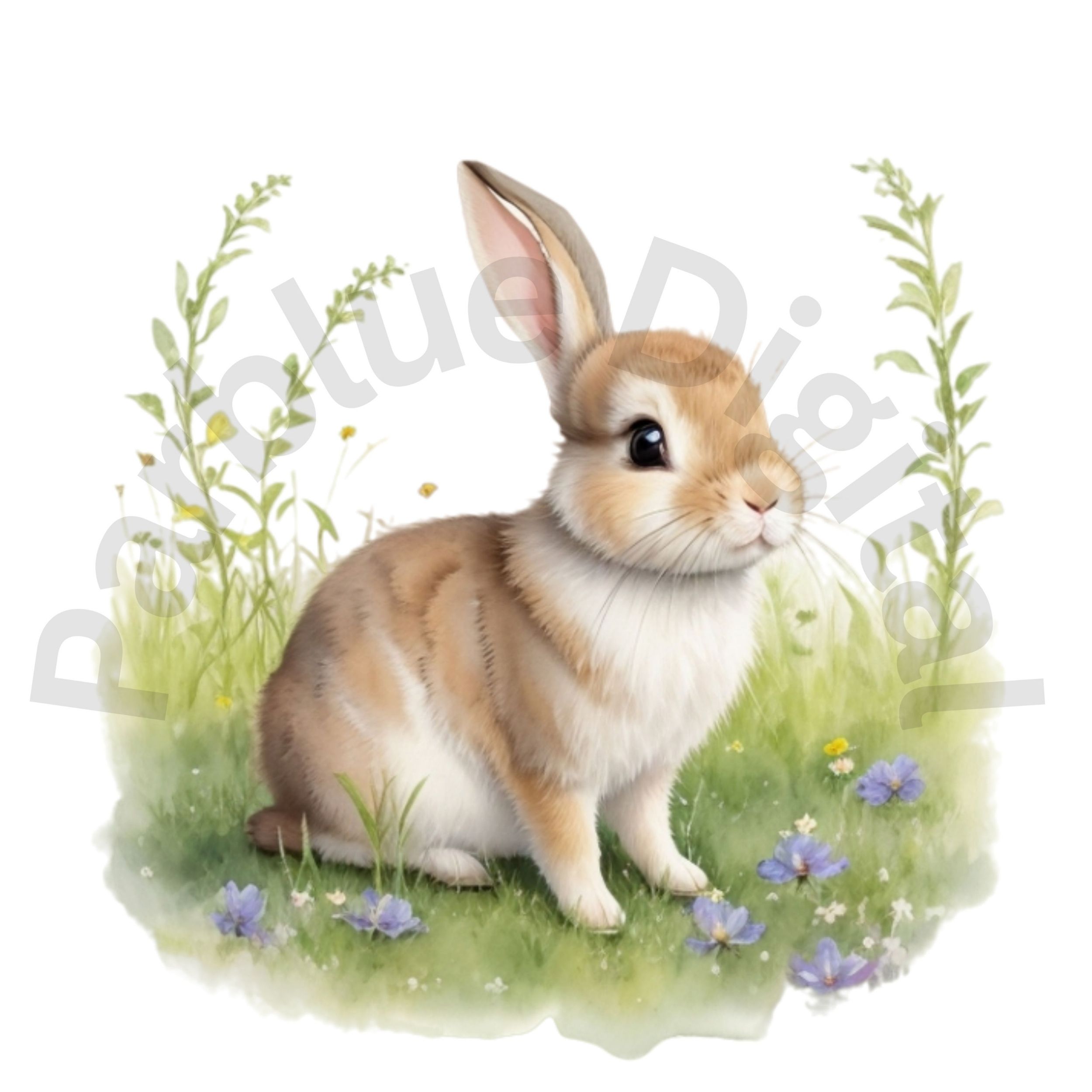 Digital Bunny in Meadow Clip Art,Instant Digital Download, Printable Watercolor Clip Art, High Quality PNG, Digital download, Paper Craft, Junk journals.