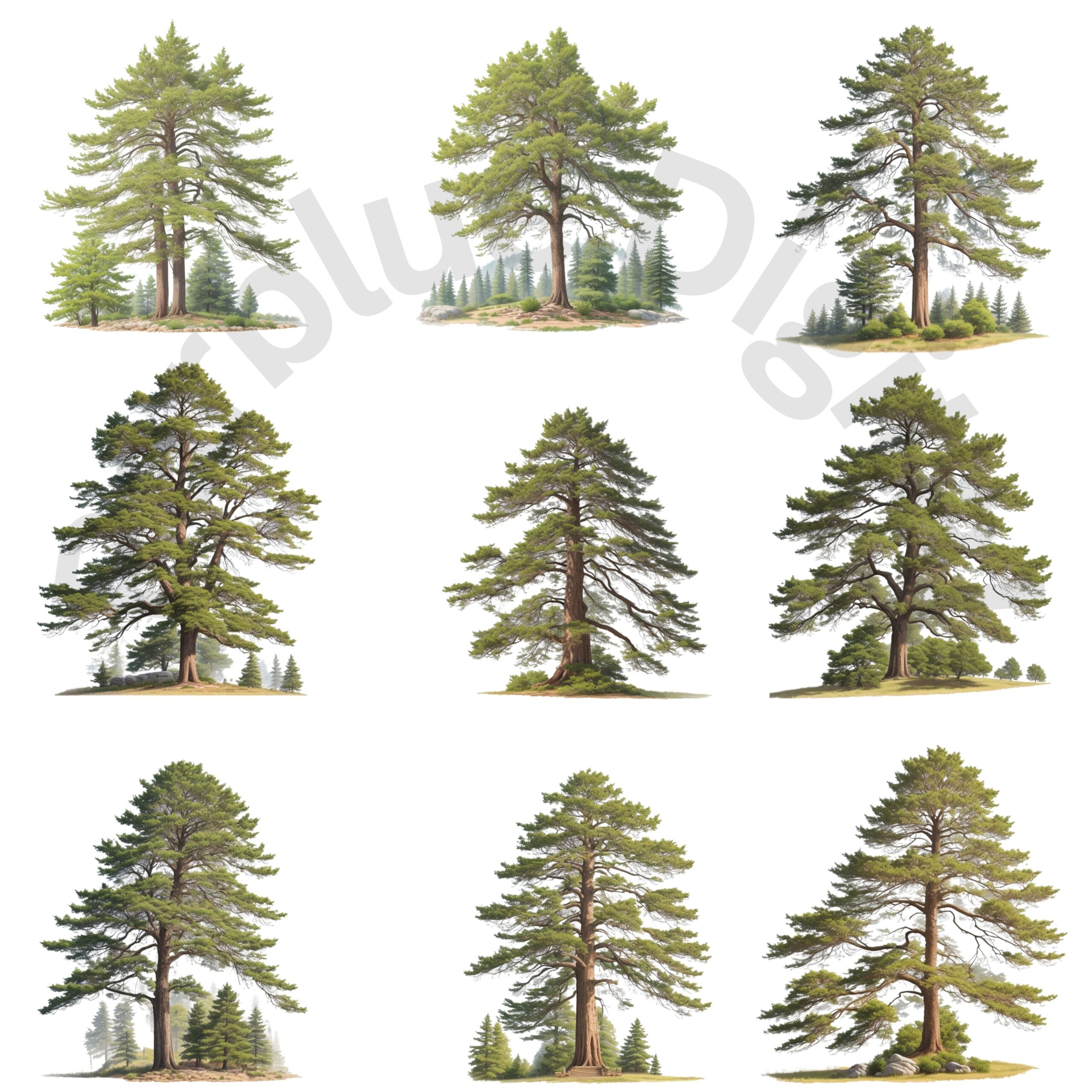 Digital Cedar Tree Clip Art,Instant Digital Download, Printable Watercolor Clip Art, High Quality PNG, Digital download, Paper Craft, Junk journals.
