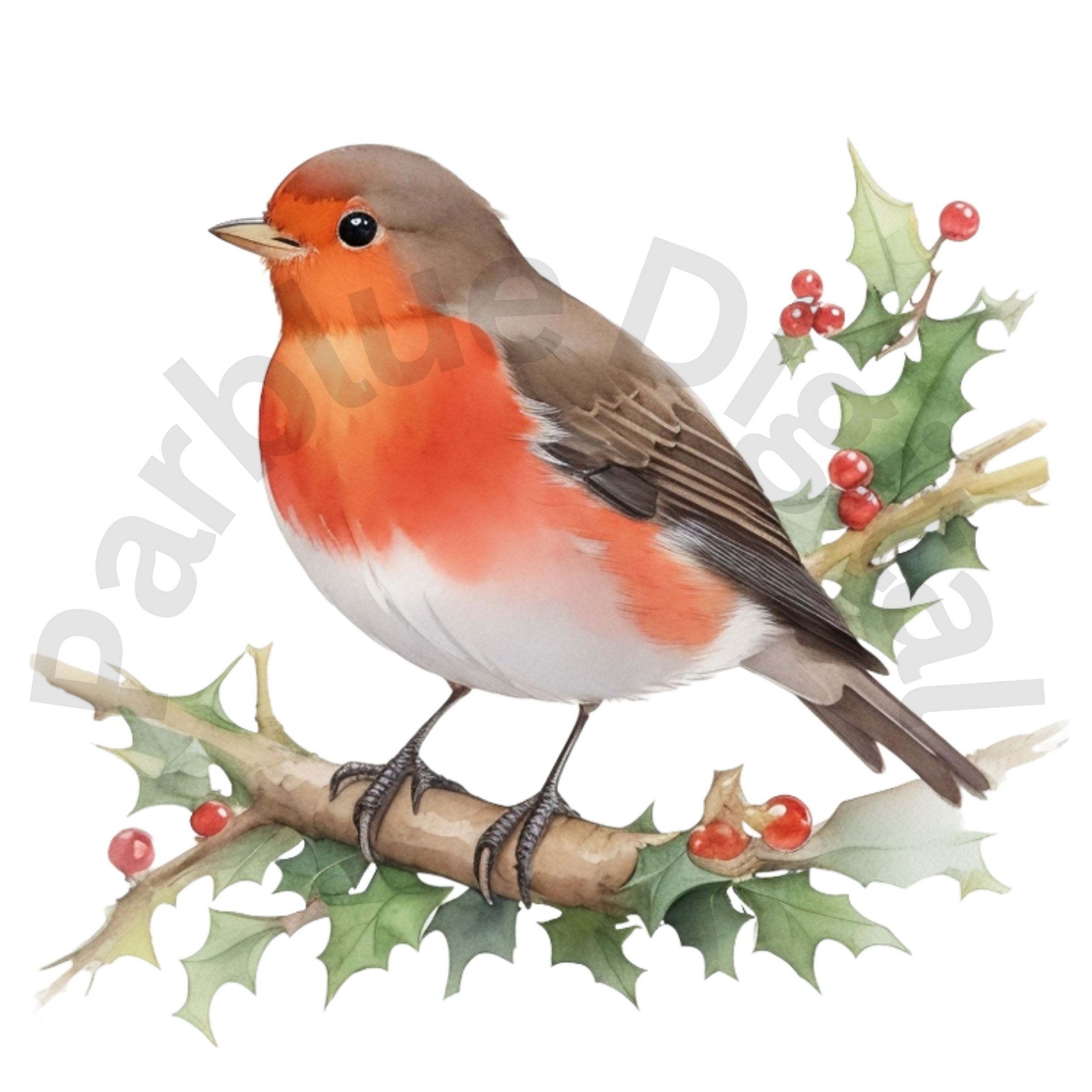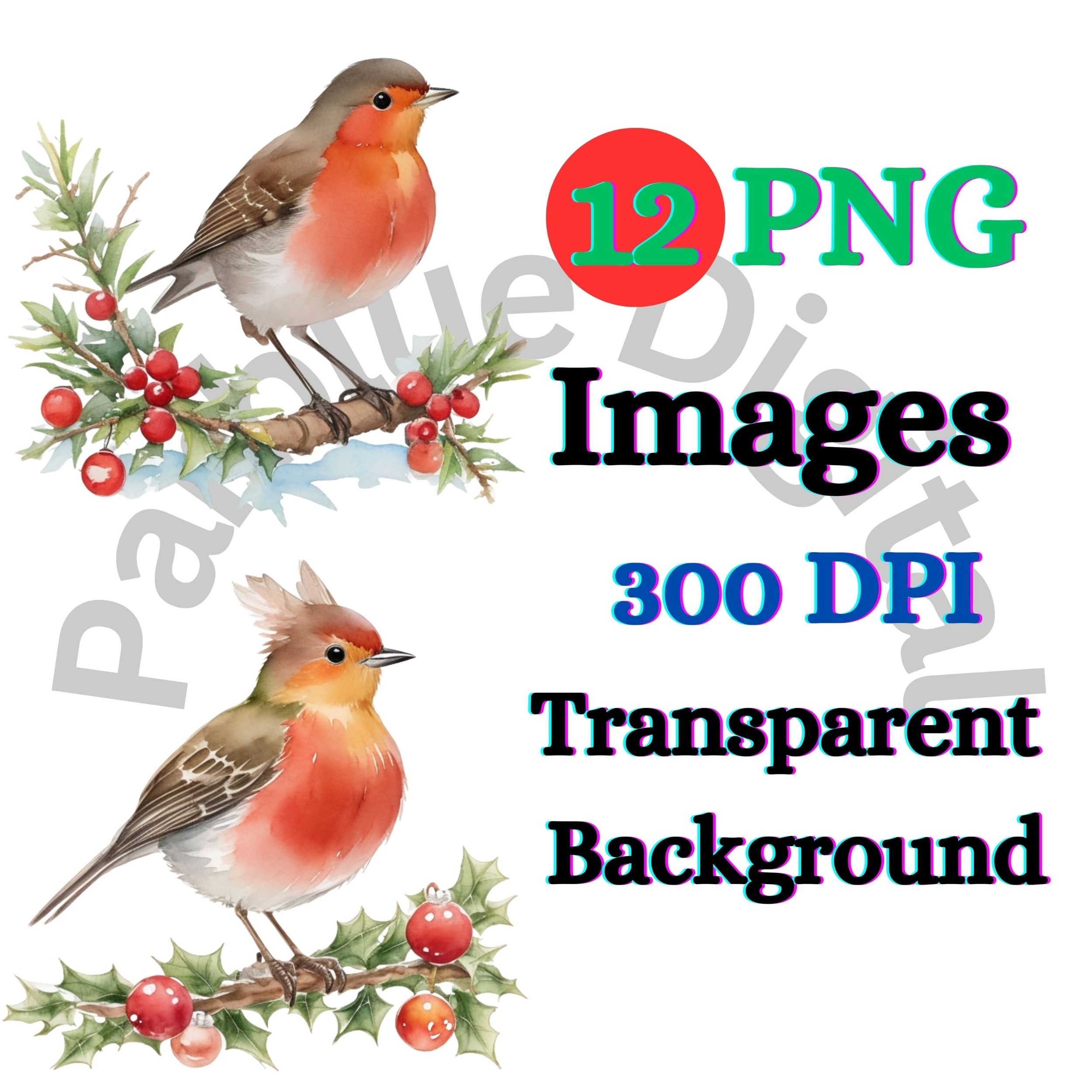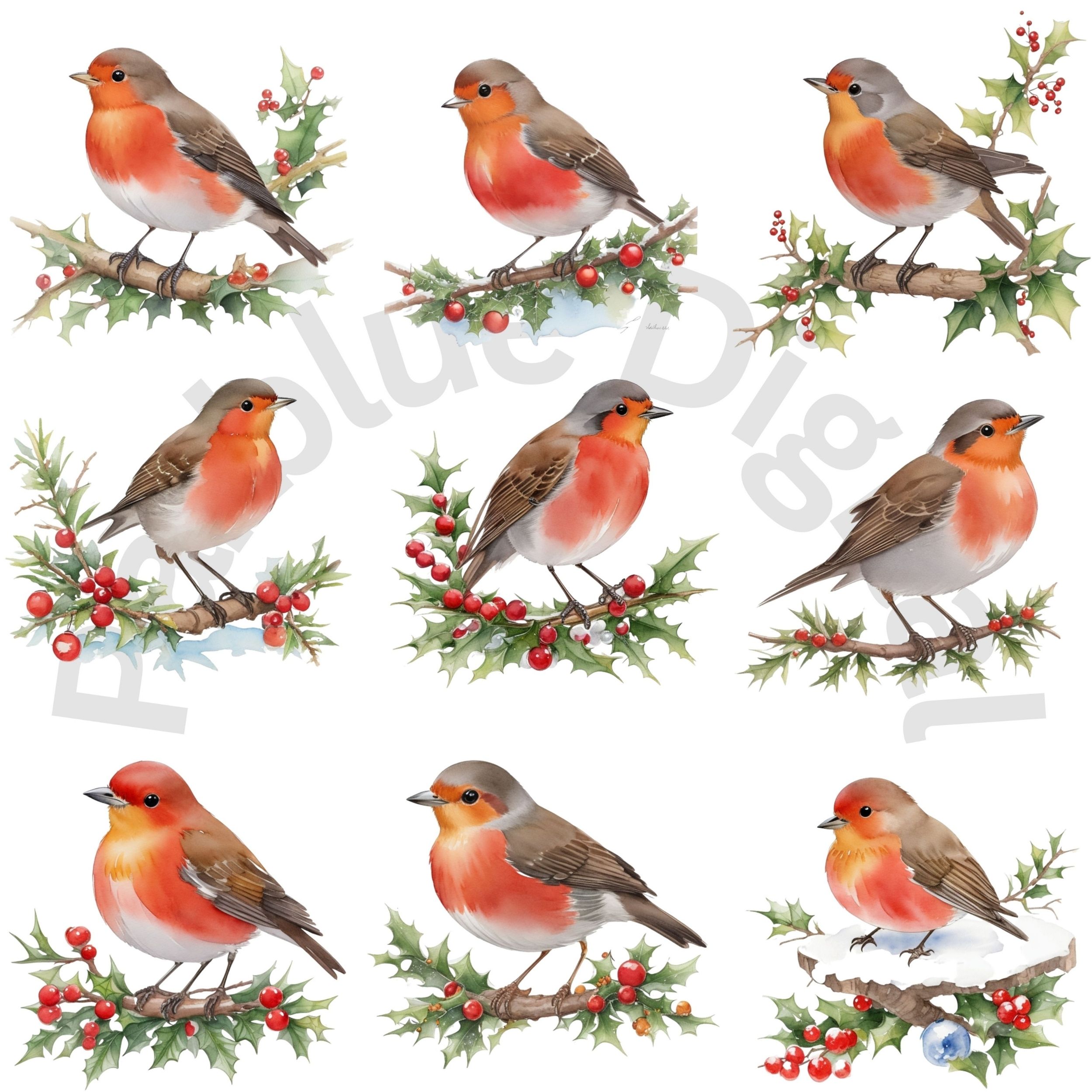 Digital Christmas Robin Clip Art,Instant Digital Download, Printable Watercolor Clip Art, High Quality PNG, Digital download, Paper Craft, Junk journals