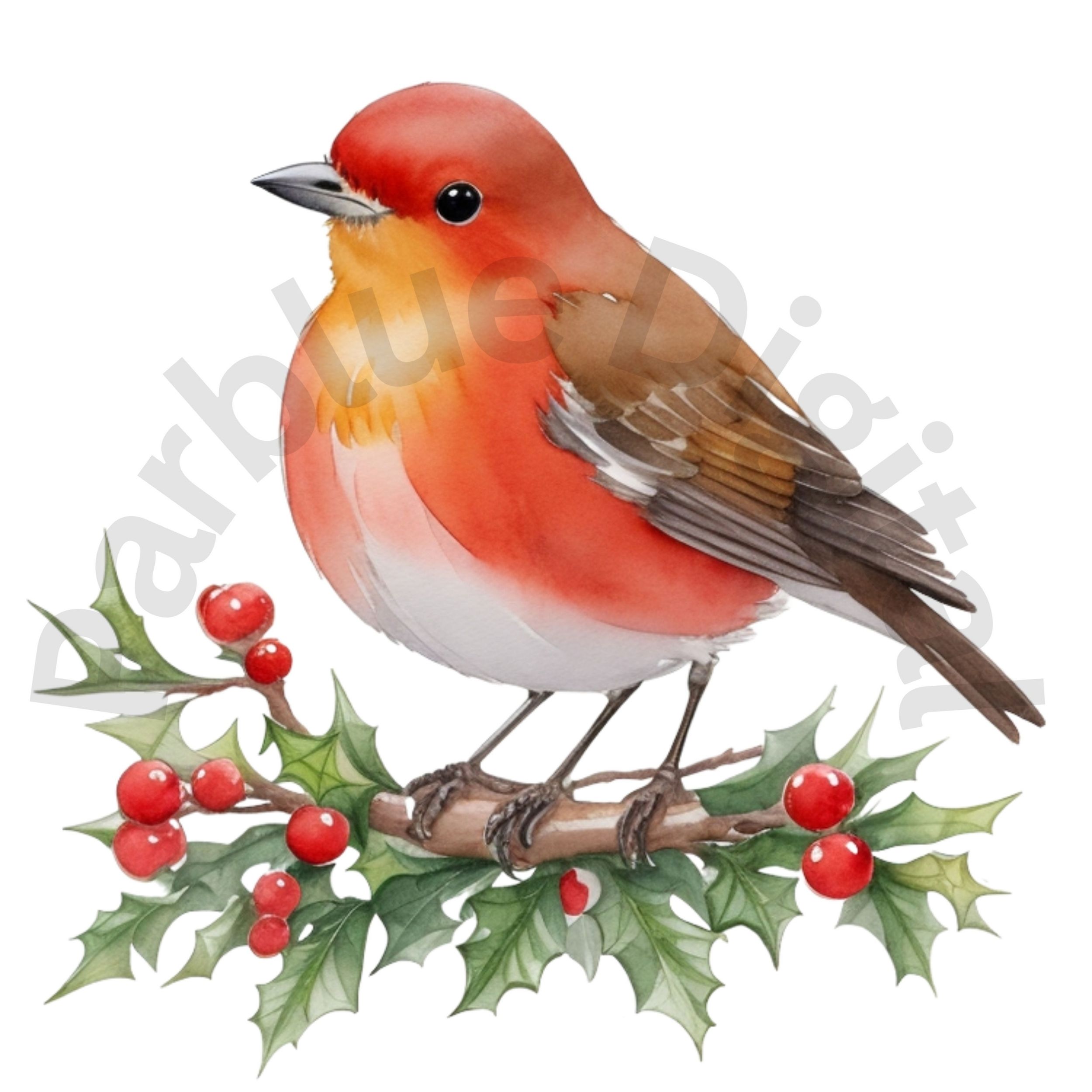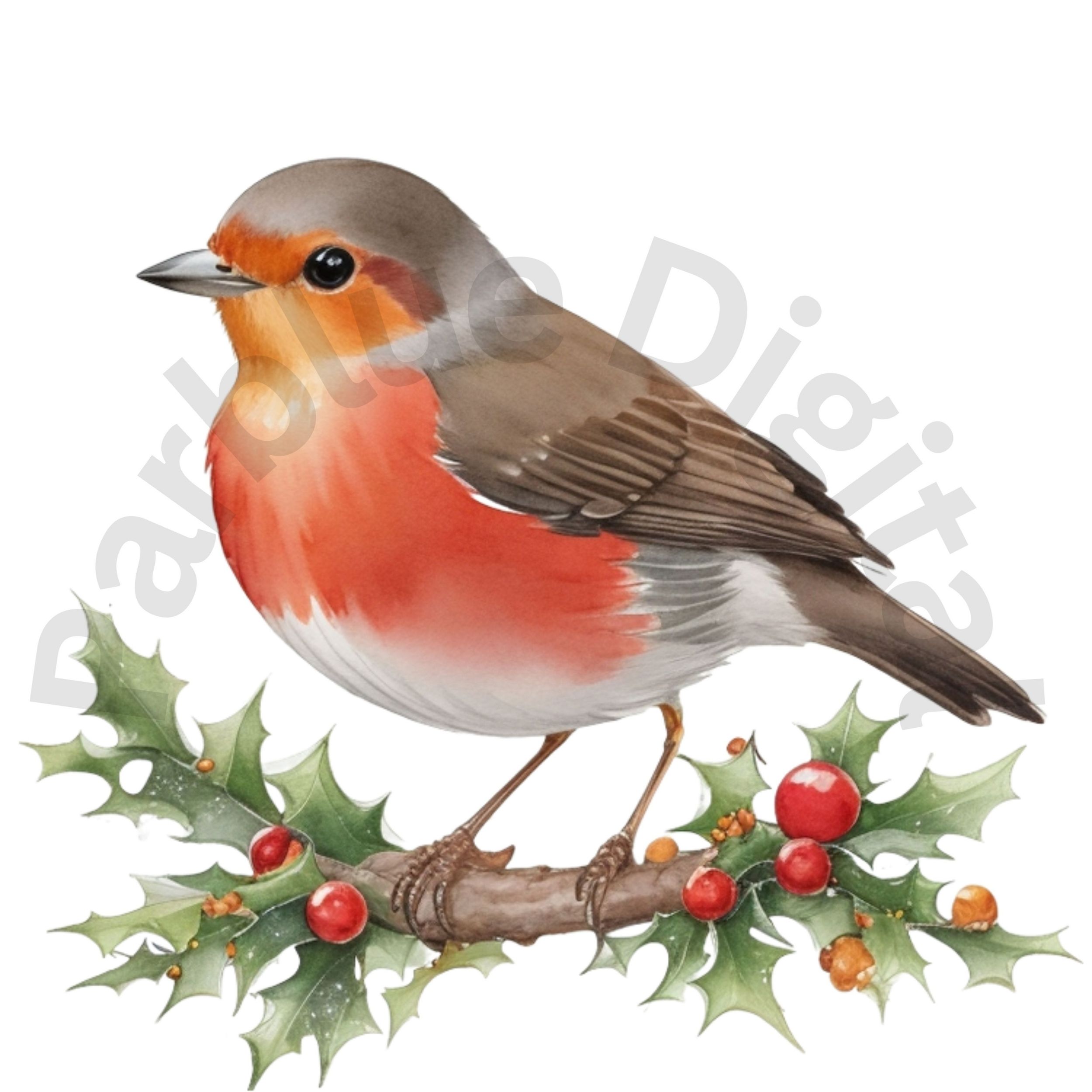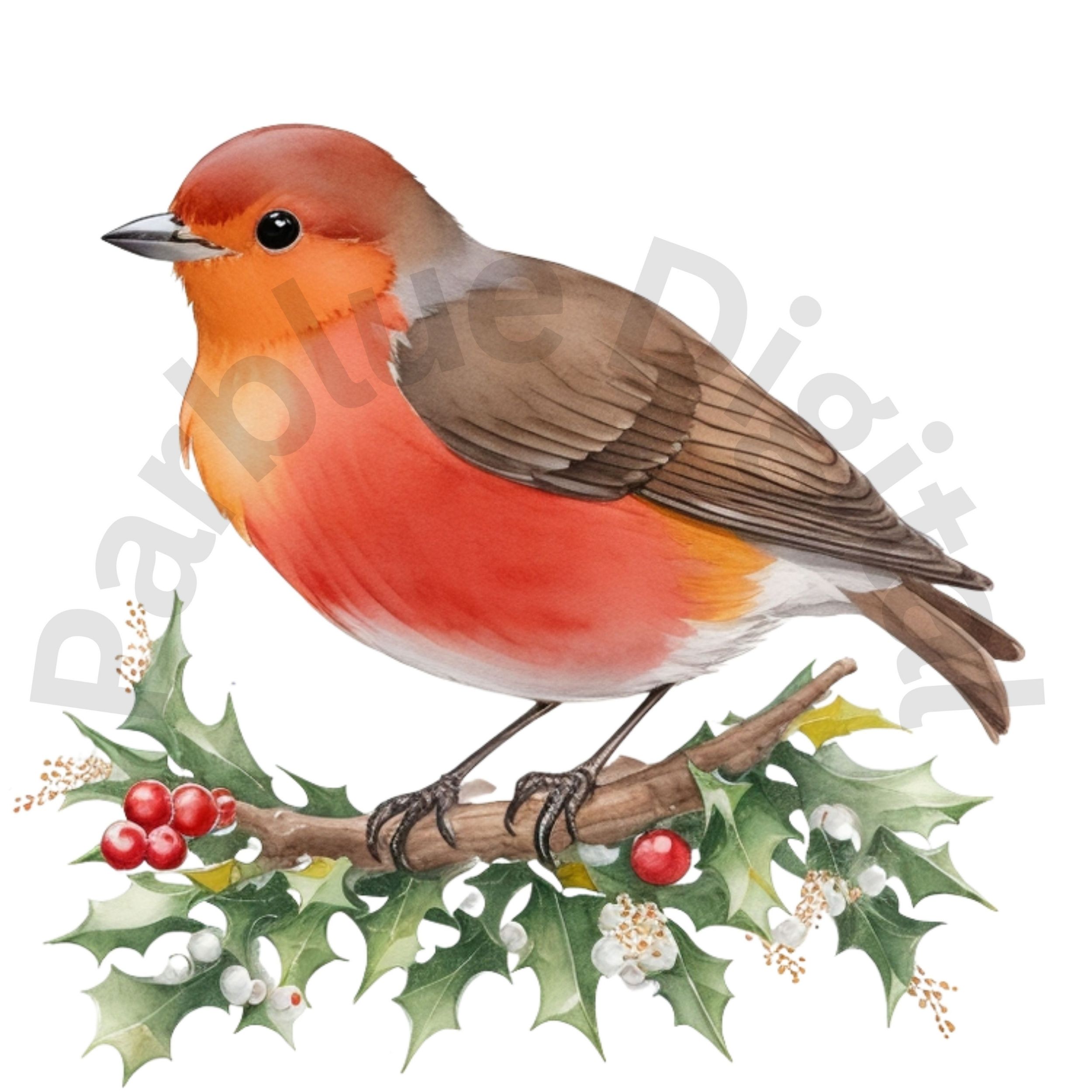 Digital Christmas Robin Clip Art,Instant Digital Download, Printable Watercolor Clip Art, High Quality PNG, Digital download, Paper Craft, Junk journals