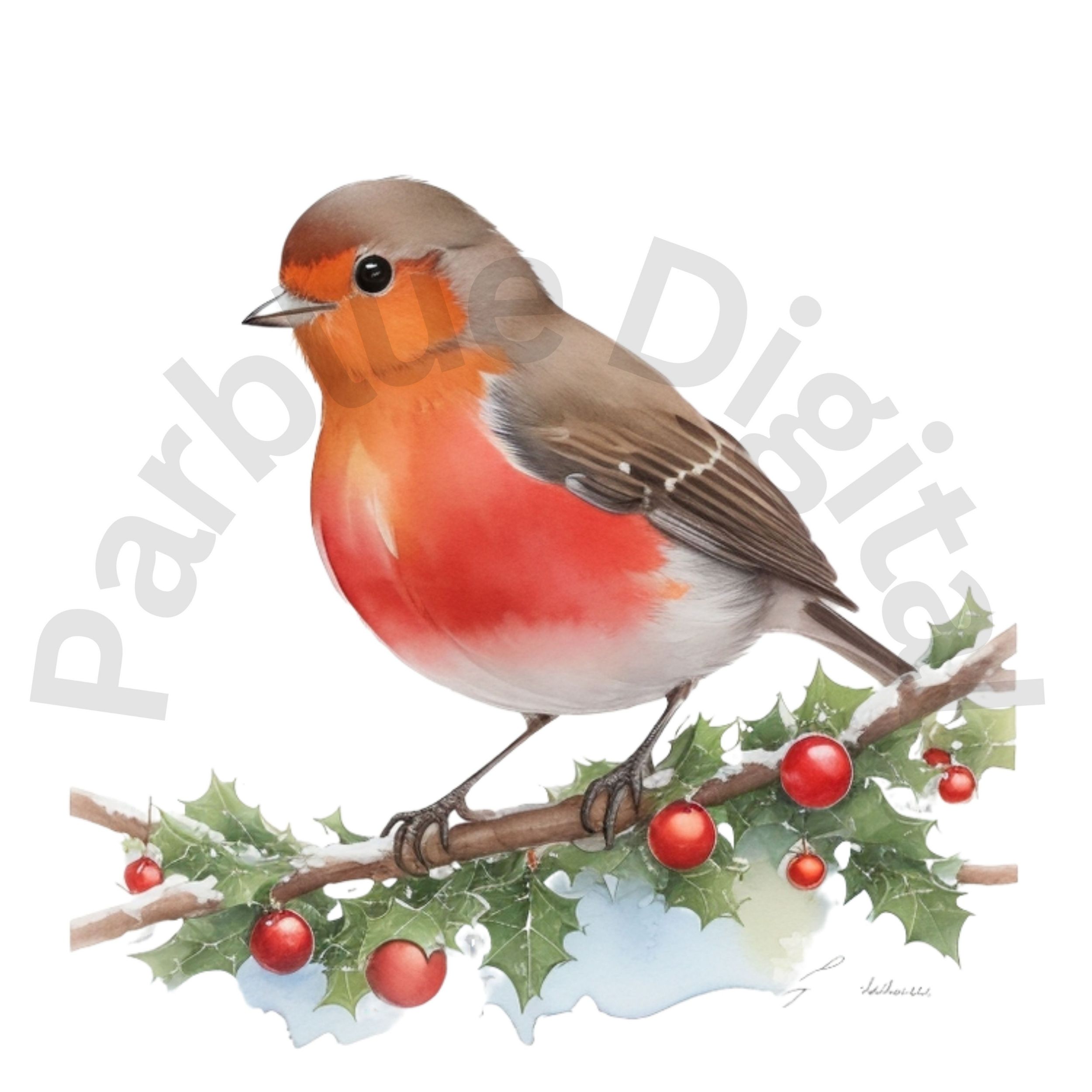 Digital Christmas Robin Clip Art,Instant Digital Download, Printable Watercolor Clip Art, High Quality PNG, Digital download, Paper Craft, Junk journals | # 187 CA