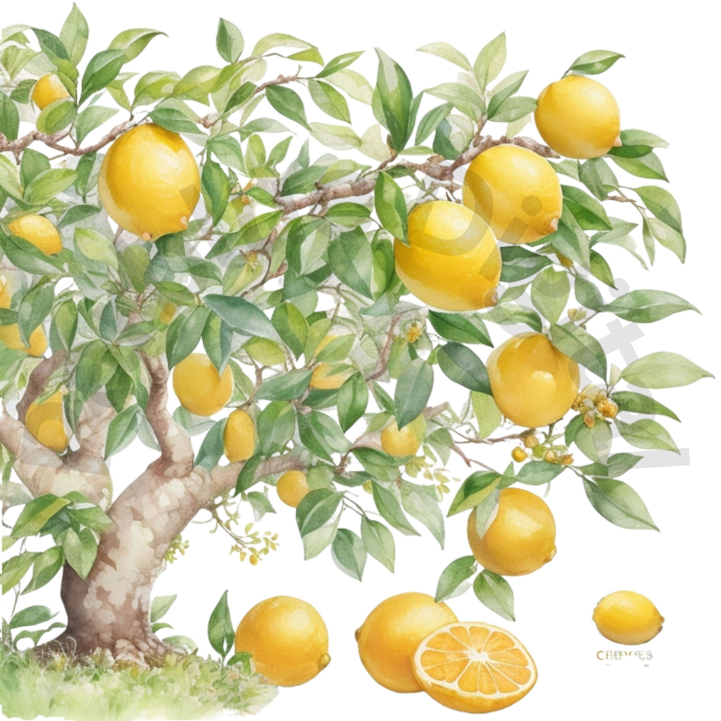 Digital Lemon Tree Clip Art,Instant Digital Download, Printable Watercolor Clip Art, High Quality PNG, Digital download, Paper Craft, Junk journals .