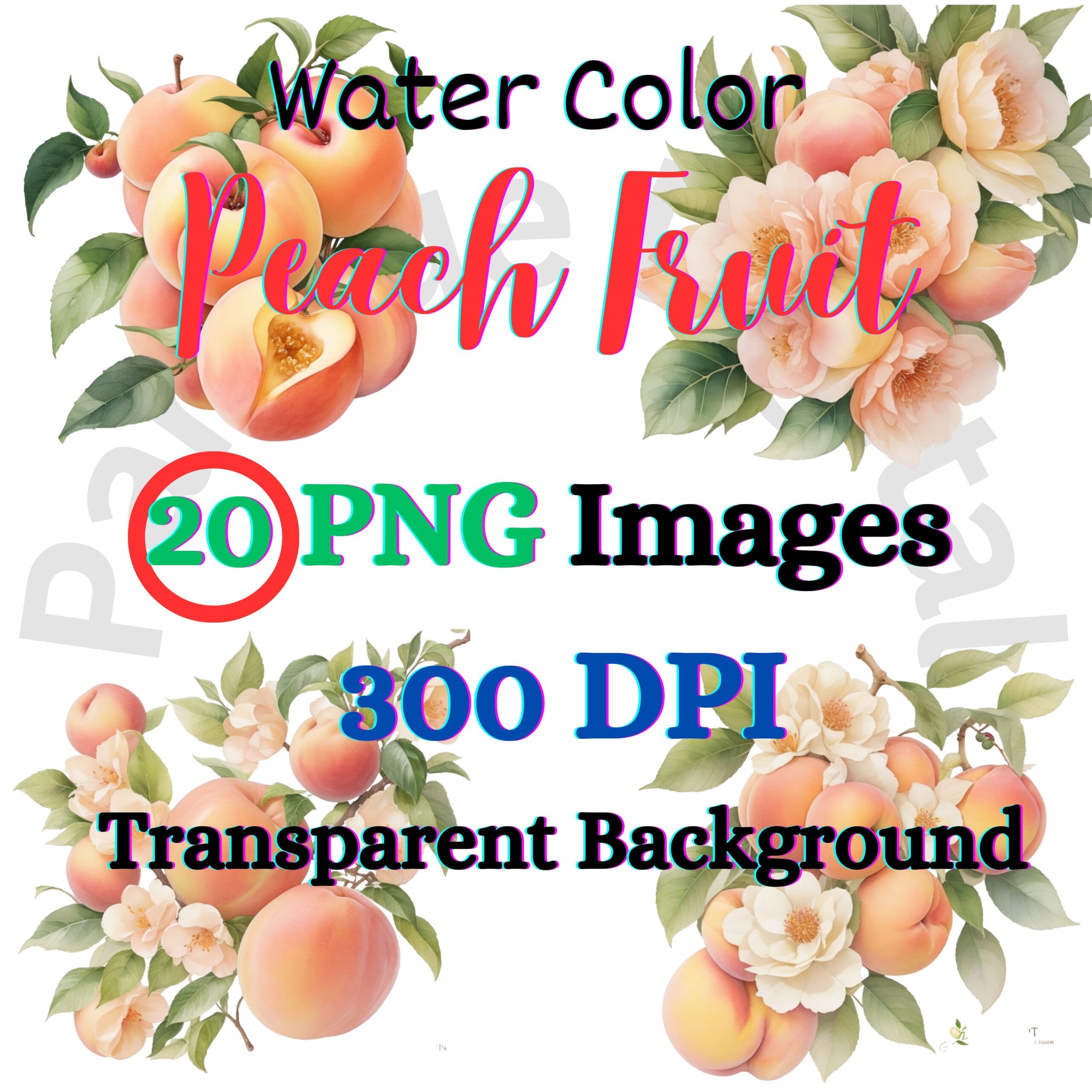 Digital Peach Fruit Clip Art,Instant Digital Download, Printable Watercolor Clip Art, High Quality PNG, Digital download, Paper Craft, Junk journals.