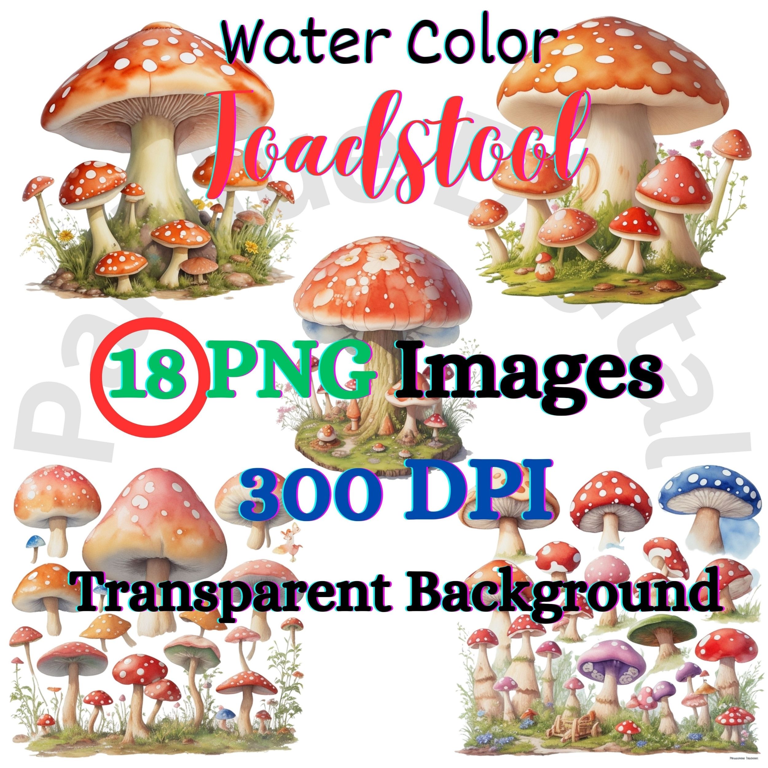 Digital ToadStool Clip Art,Instant Digital Download, Printable Watercolor Clip Art, High Quality PNG, Digital download, Paper Craft, Junk journals.