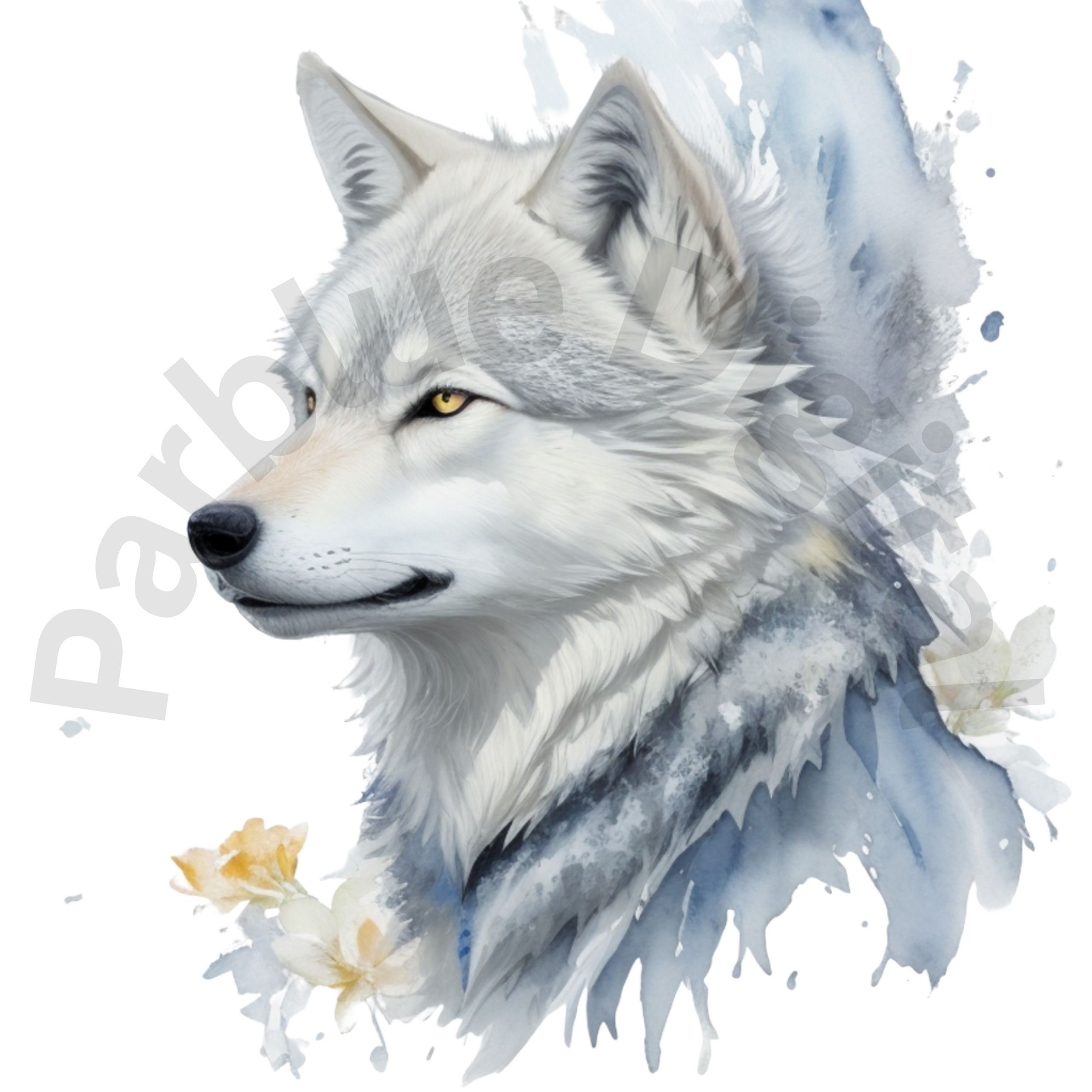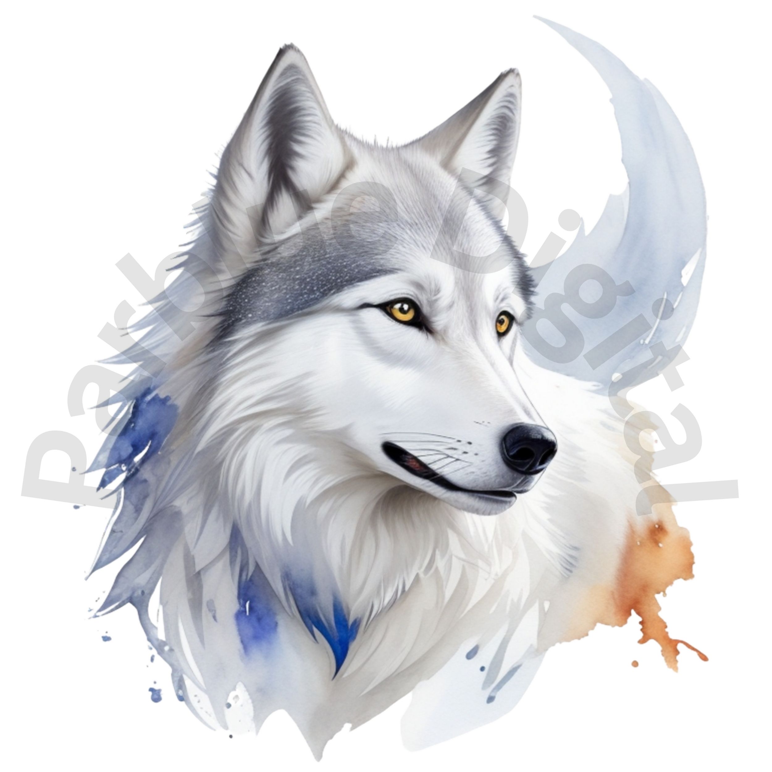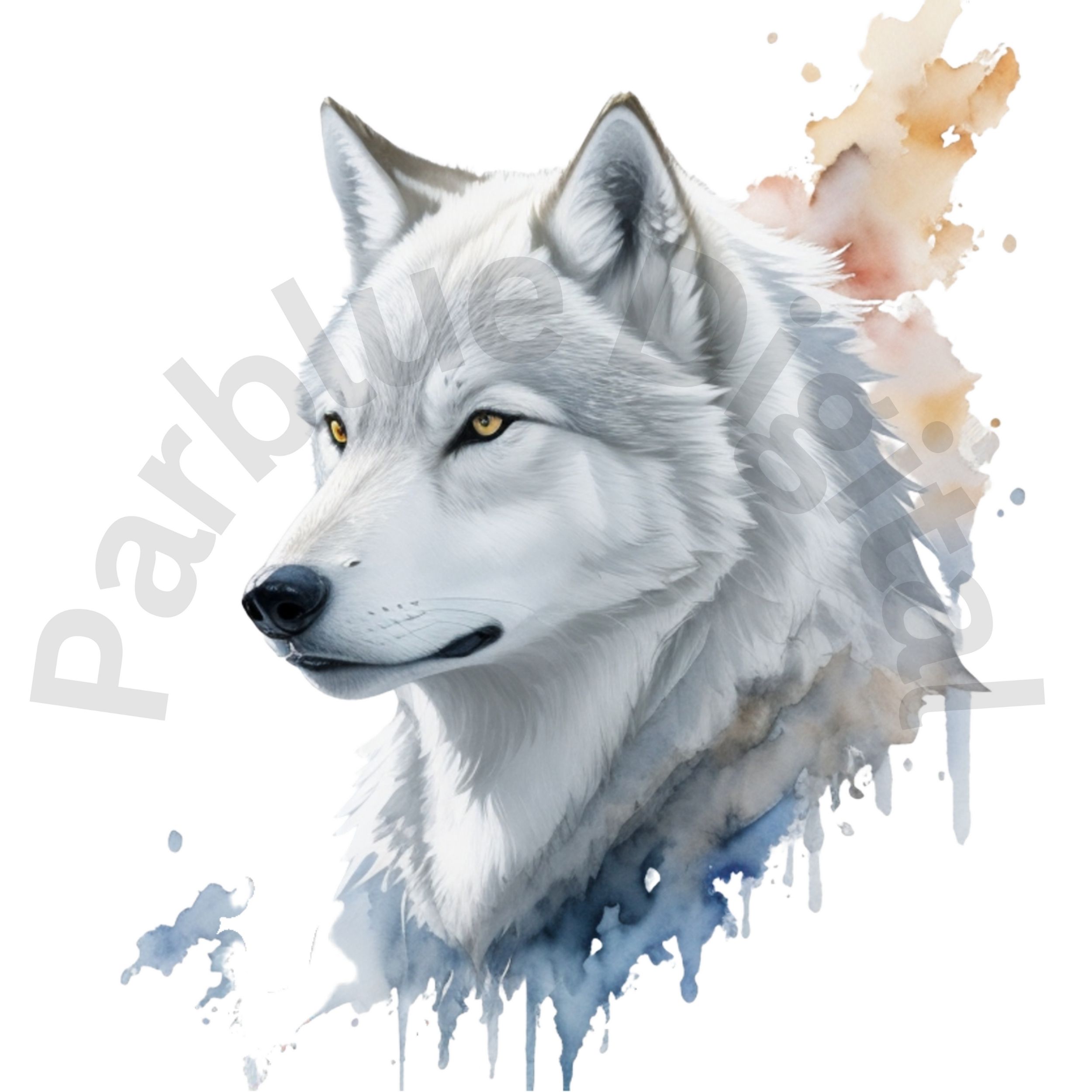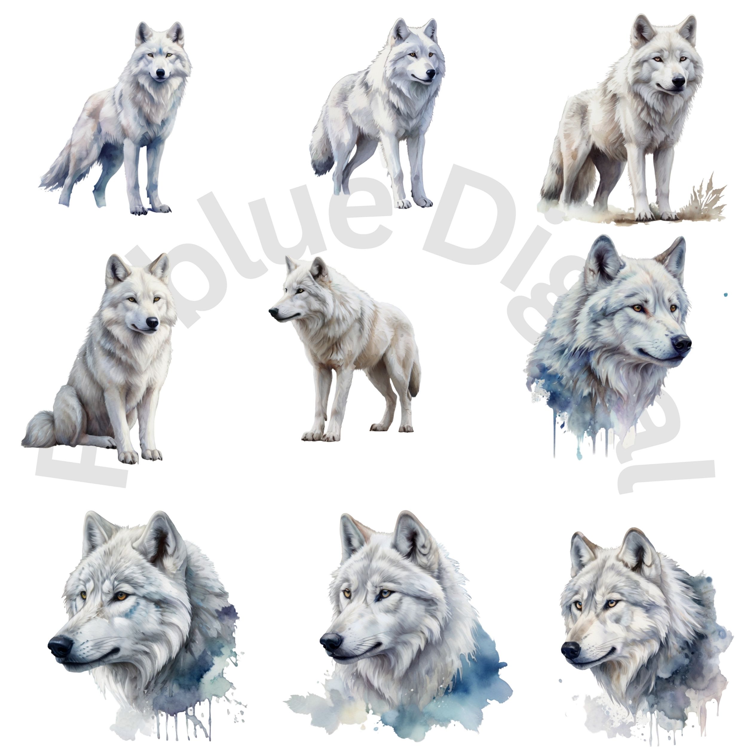 Digital White Wolf Clip Art,Instant Digital Download, Printable Watercolor Clip Art, High Quality PNG, Digital download, Paper Craft, Junk journals