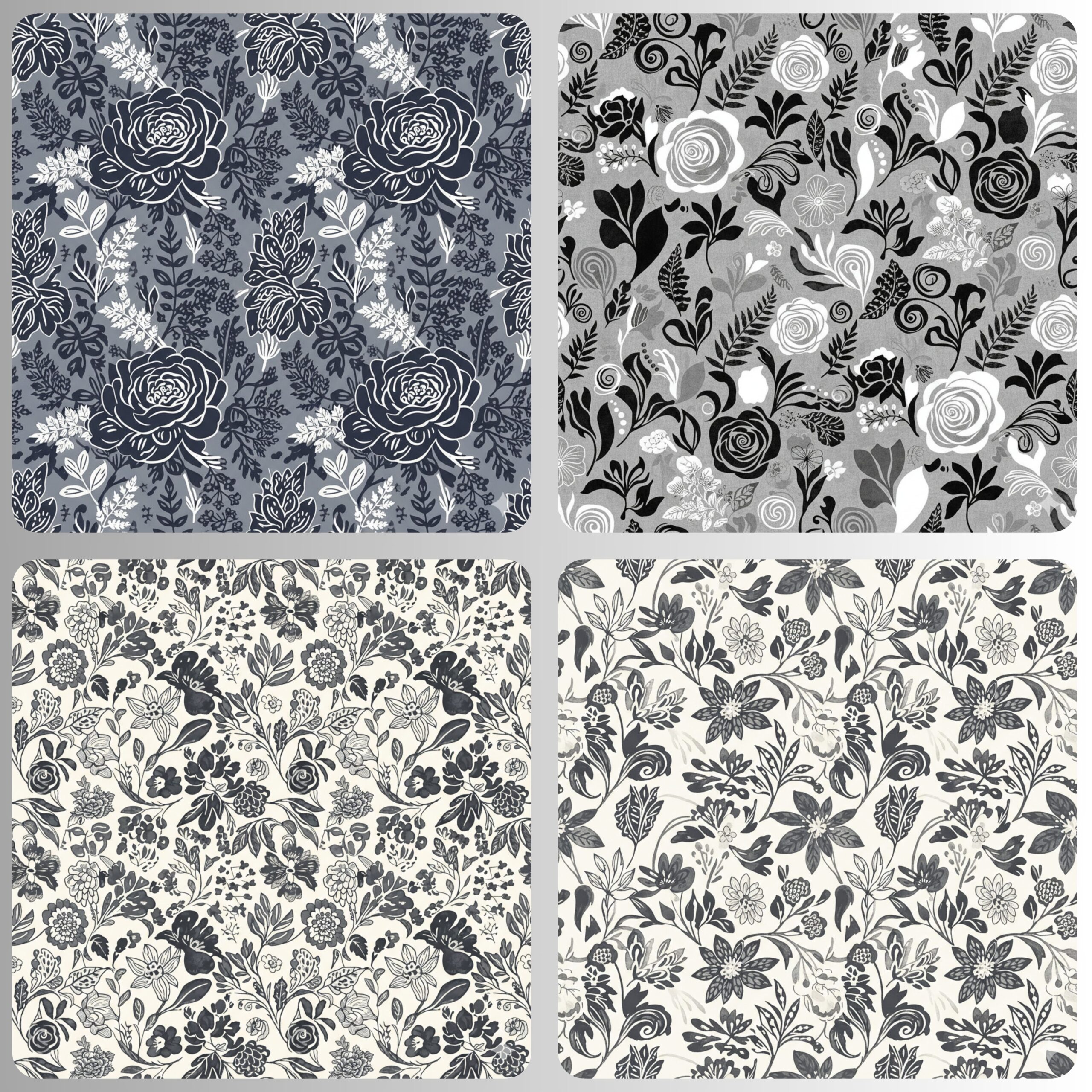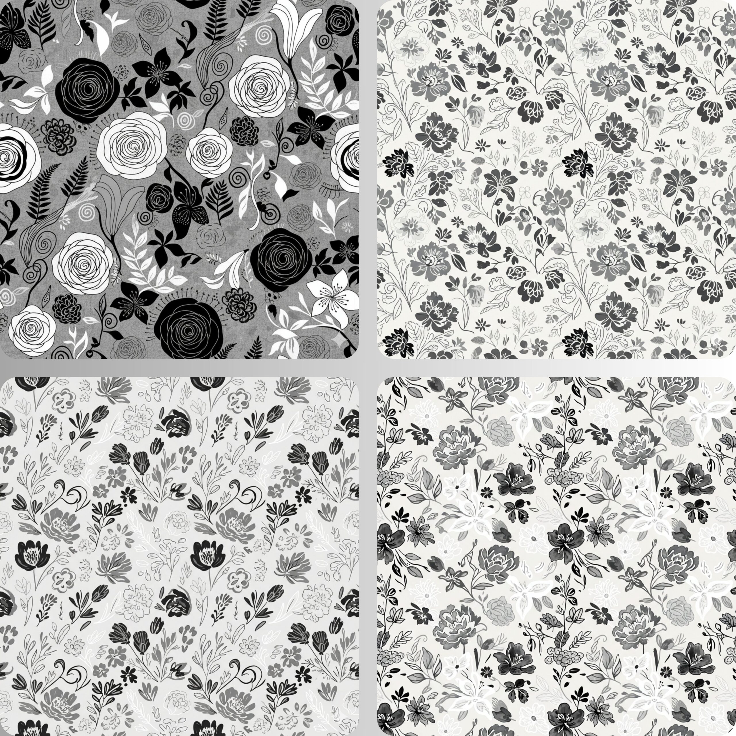 Monochromatic Florals Seamless Digital Pattern Texture,Repeating Patterns,Instant Digital Download,Digital Fabrics Pattern,Digital Pattern Texture,Printable Pattern Texture.
